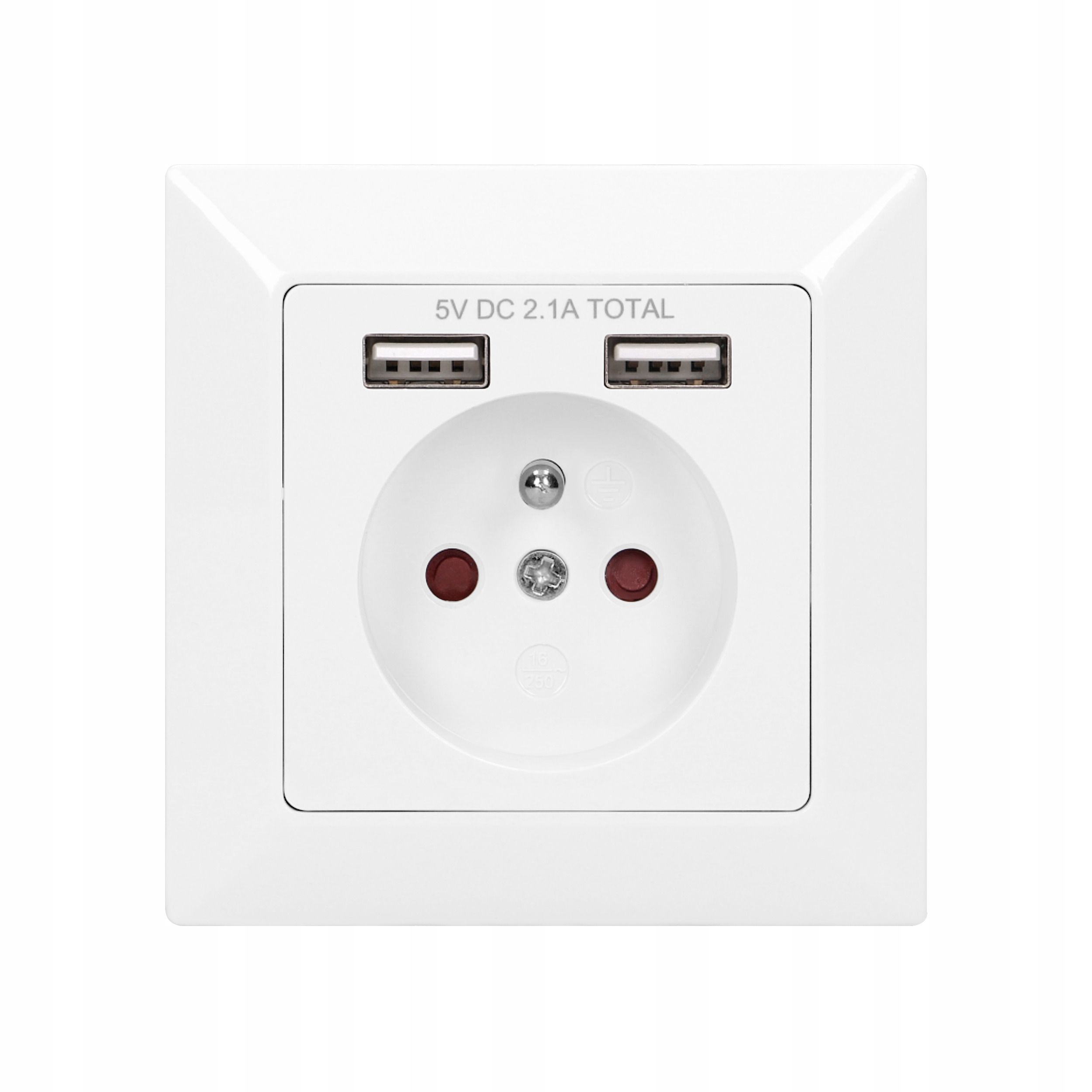 Elektrická zásuvka 2P+Z s dodatečnými USB nabíjecími porty. Po připojení vhodného USB kabelu (nejsou součástí balení) umožňuje nabíjení většiny telefonů, tabletů a mobilních zařízení dostupných na trhu, včetně iPhone, iPad, iPod apod. Montáž do standardního otvoru o průměru 60 mm.