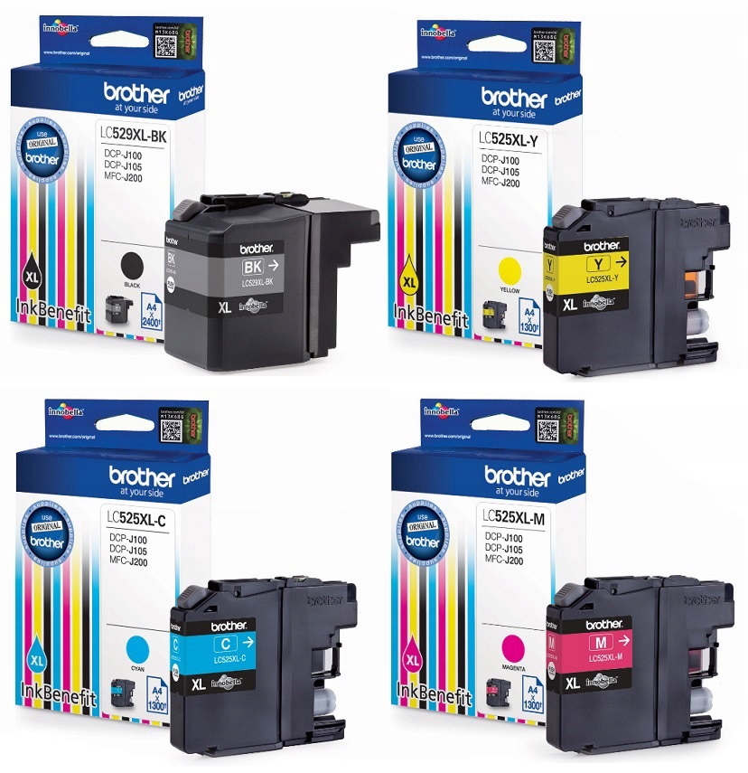 Sada 4 x originální inkoust Brother – 1x LC529XL, 3x LC525XL