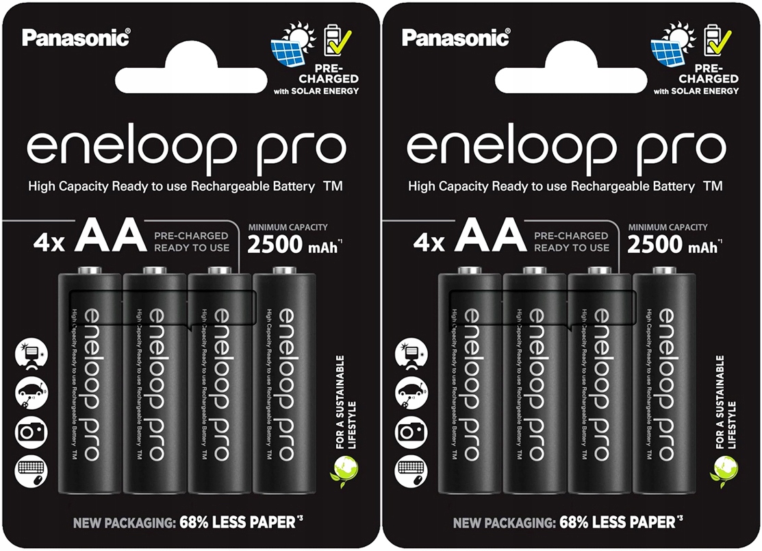Akumulátory Eneloop PRO jsou ideálním řešením pro napájení zařízení s vysokou spotřebou energie, jako jsou blesky fotoaparátů, bezdrátové klávesnice a myši, herní ovladače, rádiem ovládané hračky a různé domácí spotřebiče. Po použití baterií Eneloop PRO mohou všechna tato zařízení pracovat mnohem déle.