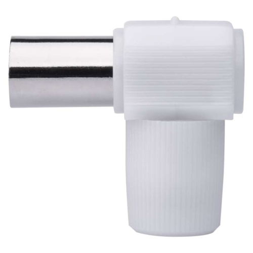 IEC konektor úhlová zásuvka je určen k napojení na koaxiální kabel a má bílou barvu. Prodává se po 10 ks a je plastový.