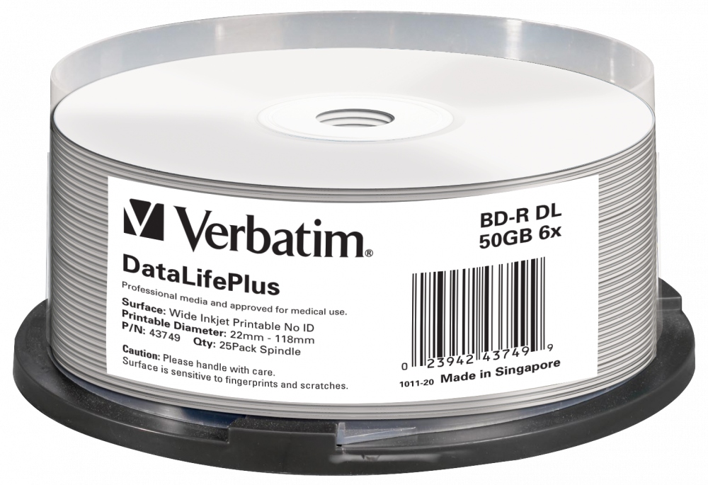 Profesionální optická datová média jsou vyrobena specifikacemi, které jsou ještě přísnější, než předpokládají současné standardy. Vyšší specifikace zajišťují větší kompatibilitu s rekordéry a přehrávači. To vám umožní zajistit vyšší kvalitu záznamu a delší dobu ukládání souborů, stejně jako vyšší spolehlivost. Profesionální optická média značky Verbatim poznáte podle označení DataLifePlus.