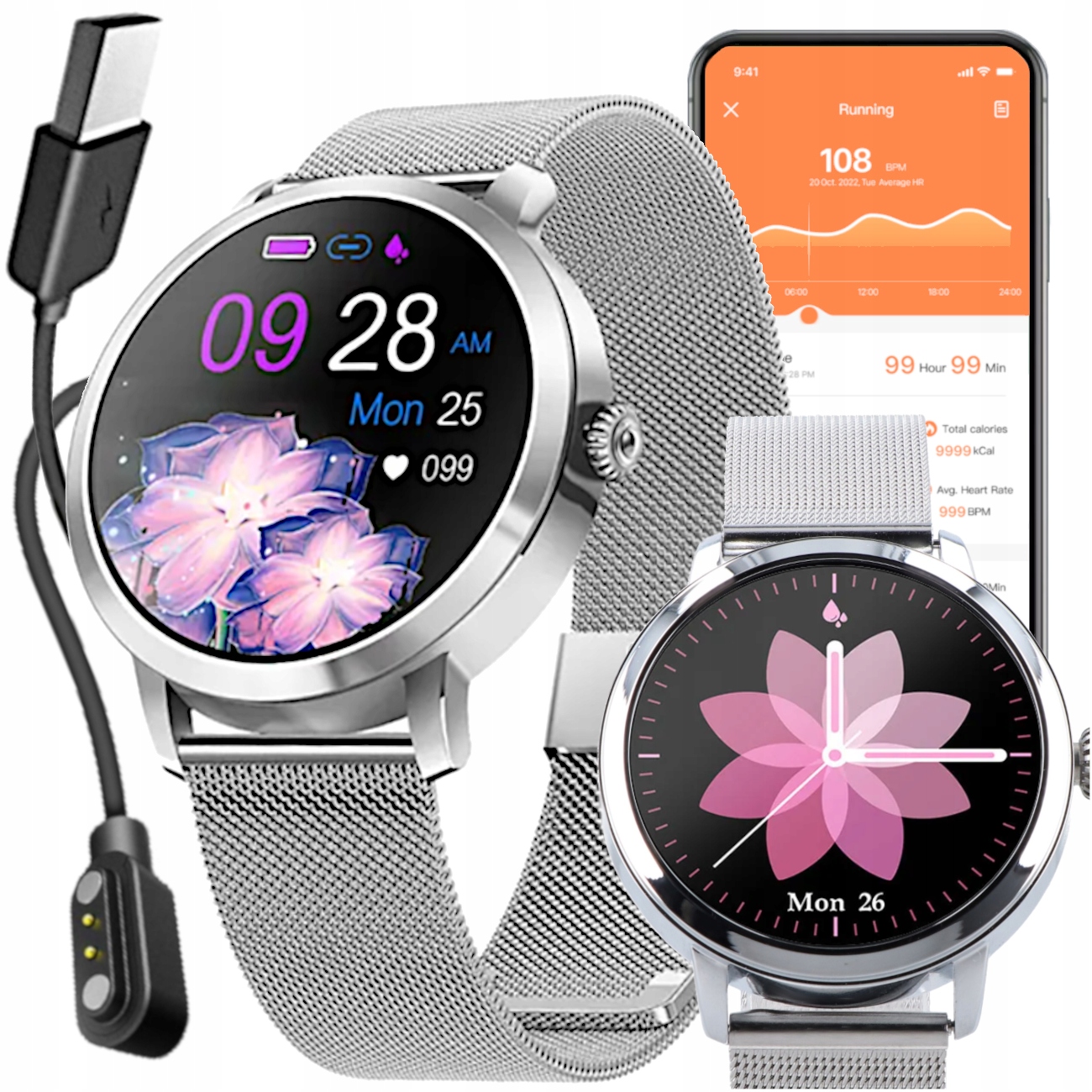- Obsah sady: Hodinky, Nabíjecí kabel, Návod, Krabička