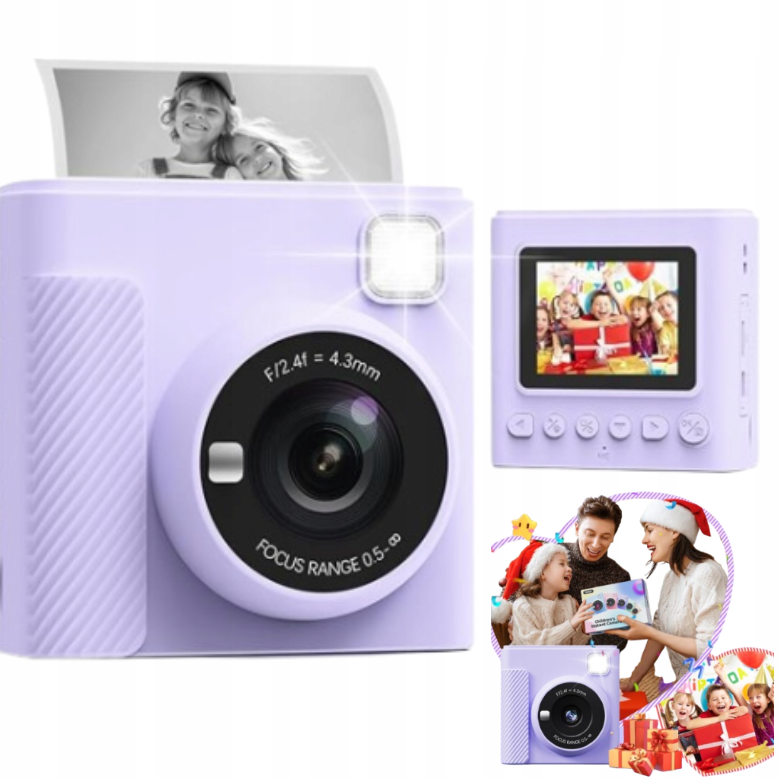 ⭐ Kamera pro děti s okamžitým tiskem TIATUA, 2,4“ obrazovka, 1080P video, 32 GB karta, papír pro tisk, fialová ⭐