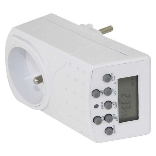 Pomocí programovatelného digitálního časového spínače (dále jen „spínač“) lze předem nastavit určitý čas zapnutí či vypnutí (on/off) vašich domácích spotřebičů. Je ideální pro úsporu energie a bezpečnost ve vaší domácnosti. Funkce odpočítávání umožňuje zapnutí či vypnutí spotřebiče v předem nastaveném čase a funkce náhodného zapnutí/vypnutí (random) vám umožňuje zapínat či vypínat spotřebiče v nepravidelných časech, takže je ideální nejen pro některé automatické funkce ve vaší domácnosti, ale také vás chrání před vloupáním během vaší nepřítomnosti. LCD displej ukazuje stav nastavení programu a reálný čas. Maximální počet programů pro vypnutí/zapnutí je 140 za týden. Funkce odpočítávání „countdown“. Funkce změny letního času na zimní čas pomocí stisknutí kombinací tlačítek. 140 spínacích možností zapnutí/vypnutí za týden. 20 spínacích možností zapnutí/vypnutí za den. Malý rozměr. Tato digitální spínací zásuvka, nebo-li časovač, je ideální pro nastavení zapnutí a vypnutí jakýchkoliv elektrických spotřebičů. Je spolehlivý i ve Vaší nepřítomnosti.