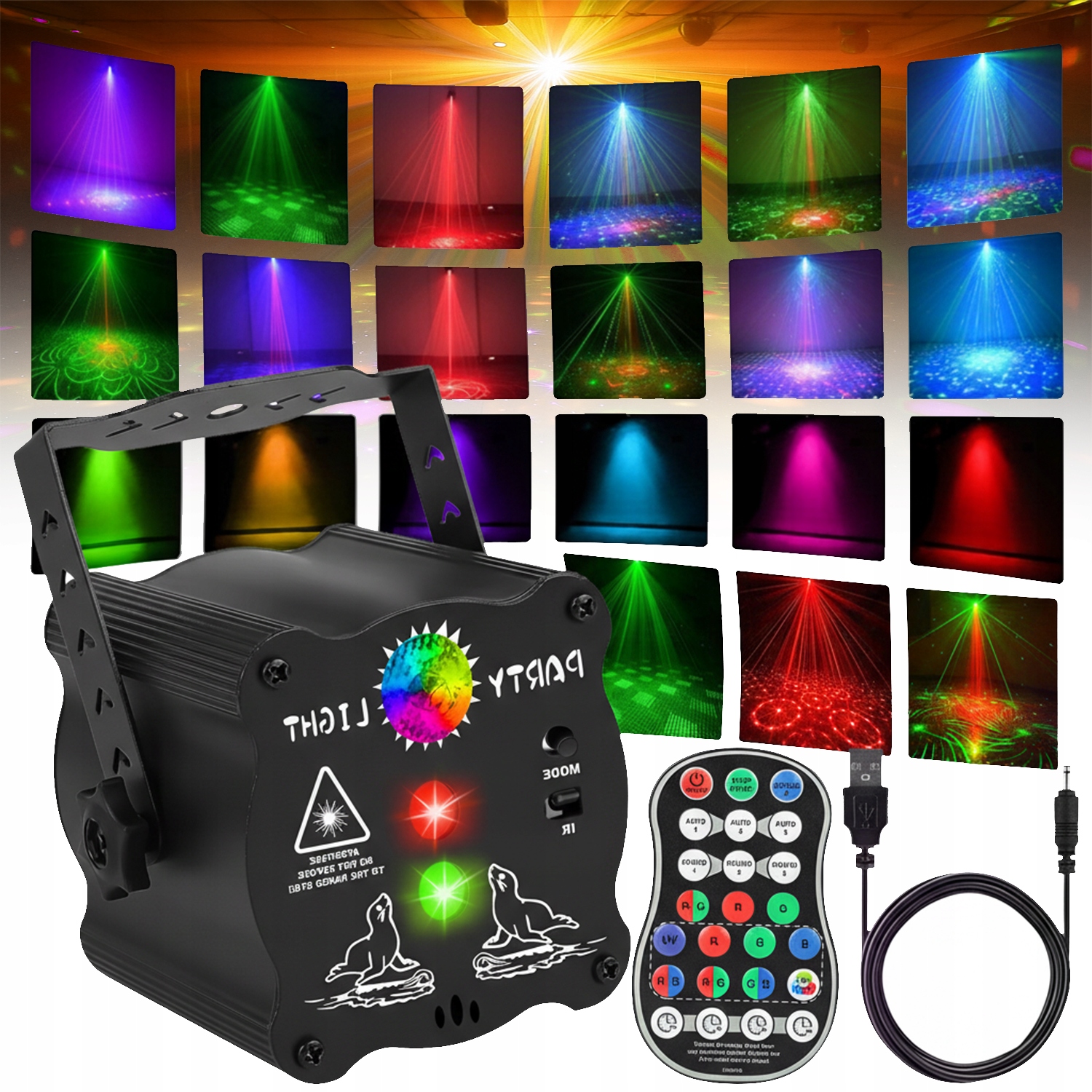 Zařízení nabízí 60 různých laserových vzorů v kombinaci s sedmi barvami pozadí: červenou, zelenou, modrou, žlutou, azurovou, fialovou a černou. Volné zapínání a vypínání jednotlivých světel a pozadí umožňuje vytvořit stovky jedinečných kombinací vizuálních efektů.