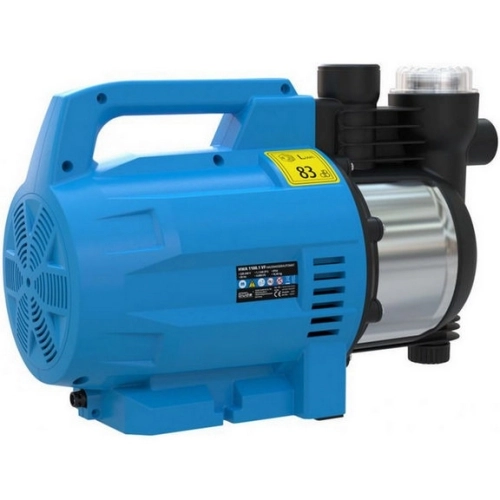 Domácí vodní automat, určený k čerpání (čisté) užitkové vody za účelem zásobování domácnosti nebo zavlažování zahrady. Čerpání studniční, pramenité nebo dešťové vody ze sudů, cisteren a zásobníků • dodávky vody pro automatickou pračku, splachování toalety ad. • zalévání trávníku a záhonů pomocí nad-/podzemních zavlažovacích zařízení. Integrovaný tlakový spínač s ochranou proti chodu nasucho • vestavěný vodní filtr, sloužící k oddělení a zadržení písku či jiných (organických) nečistot, obsažených v čerpané vodě. Samonasávací čerpadlo • jednostupňové hnací ústrojí (oběžné kolo z termoplastu) • LED ukazatel. Motor 1.100 W/P1 (tepelná ochrana), 1,5 m síťový kabel H07 RN-F. Konstrukce: přípojky sacího i výtlačného vedení s kovovými závity, keramická ucpávka, manometr, rukojeť pro pohodlné přenášení. Celkové rozměry (d x š x v): 470 x 215 x 300 mm, max. teplota přečerpávané vody: 35 °C, hladina akustického výkonu LWA: 83 dB (A), stupeň krytí: IP X4.