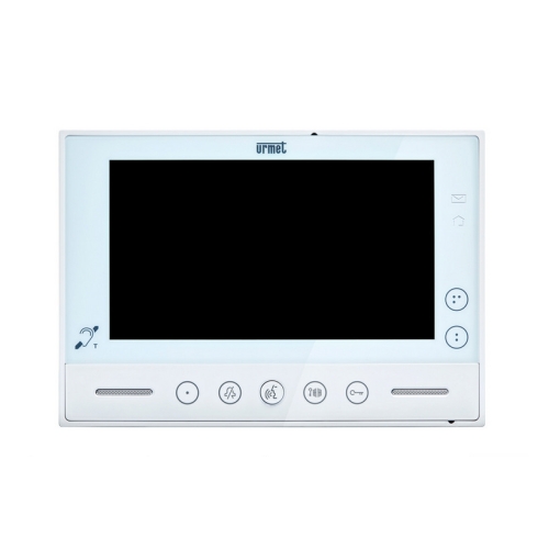 Barevný 7″ videotelefon Urmet 1719/1 s Hands-free pro systém 1083 – 2Voice 7” LCD obrazovka Podsvětlená tlačítka Možnost regulace jasu a kontrastu Volitelný formát videa 4:3, nebo 16:9 Možnost interkomového volání Volba z 5 vyzváněcích tónů samostatně pro interkom a volání Hands-free, nebo push to talk varianta hovoru Vyzvánění z podlaží Integrované IN/OUT zakončení sběrnice Samostatná tlačítka pro otevírání el. zámku a el. brány Regulace hlasitosti vyzvánění Rozměry 202 x 142 x 23,5 mm videotelefon určený pouze pro systém 1083 – 2Voice.