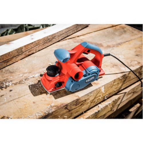 Velmi silný hoblík s hoblovací šířkou 110mm je určen k hoblování, srážení a drážkování dřeva, např. trámů a prken. Můžete s ním hoblovat 0-3mm při jednom protahu a hloubka úběru se nastavuje po 0,25mm. Při hoblování polodrážek můžete využít rozsah 0 až 8mm. Na hoblovací desce jsou dvě různě hluboké drážky sloužící k jednoduchému srážení hran a sklopný ochranný trn, který chrání při přerušení práce, nože a plochu pod hoblíkem proti poškození. Pokud preferujete práci bez tohoto ochranného trnu, můžete ho jednoduše zajistit v desce, aby se nevyklápěl. Pro udržování čistého pracovního prostoru lze k hoblíku připojit odsávání z pravé nebo levé strany. Hlavní přednosti: hoblovací šířka 110mm dvě různě hluboké drážky pro srážení hran sklopný ochranný trn v hoblovací desce hoblíku odsávání lze připojit z obou stran Technické parametry: napětí/frekvence: 230V/50Hz příkon: 1000W otáčky: 16000/min hoblovací šířka: 110mm nastavitelný úběr: 0-3mm hloubka polodrážky: 0-8mm hmotnost: 4.1kg