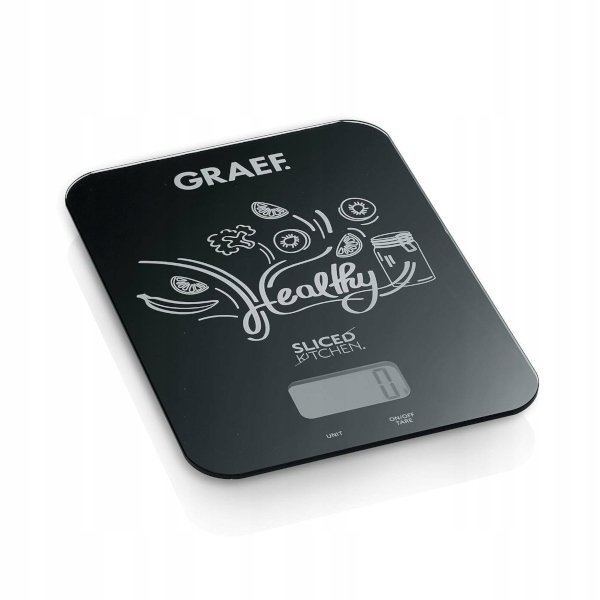 Digitální kuchyňská váha značky GRAEF je doplňkem vybavení každé kuchyně. Váha pracuje s přesností na 1 gram a má všechny funkce, které se hodí při každodenním používání. Jedná se o: indikátor přetížení, funkce vážení od 1 do 5 kg, automatické vypnutí a funkce tárování. Povrch váhy je vyroben ze skla v moderním stylu GRAEF SlicedKitchen. Po použití lze váhu snadno a efektivně vyčistit a senzorové tlačítka a velký displej o velikosti 20 mm usnadňují ovládání.