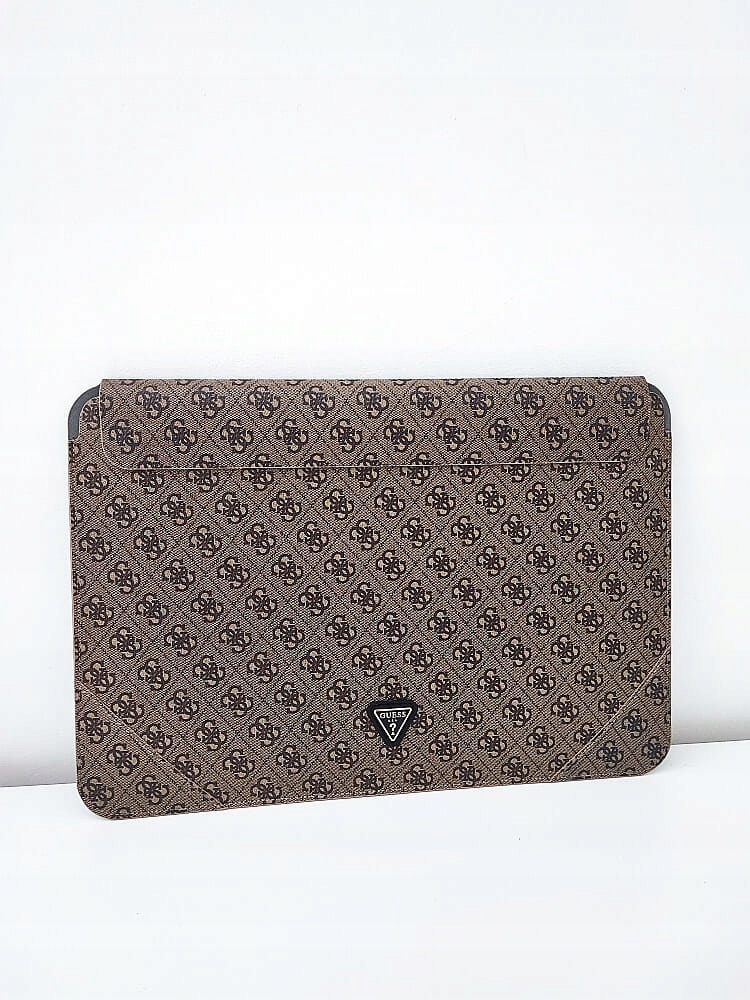 Pouzdro na notebook do 16″ je vyrobeno z hnědé, odolné ekokůže s logem značky Guess.