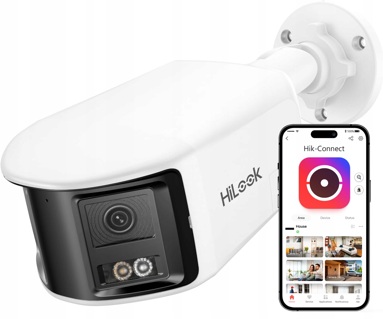 Kamera HiLook s dvojitým objektivem inteligentně kombinuje snímky do panoramatického obrazu s úhlem 180 stupňů bez mrtvých zón při zachování poměru stran 20:9. Technologie spojování obrazu zajišťuje konzistentní jas a reprodukci barev a vytváří tak dokonalý panoramatický výhled na váš pozemek.