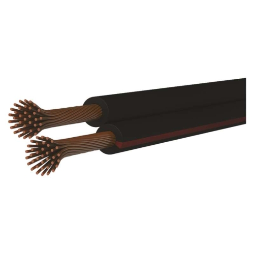 Kabel V03. VH-H 2×0,35 dvojlinka černorudá (CYH) pro bezpečné propojení elektrických přístrojů a přenosných zařízení.