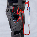 Karabina Pro spolehlivou ochranu nářadí: nosnost testovaná v četných pádových testech pro nářadí do 6 kg, i akumulátorové nářadí. Pružinový otočný zámek: zabraňuje náhodnému otevření karabiny na vybavení. Pro splnění předpisů při práci ve výškách, například při průmyslovém lezení, u arboristů, záchranných složek, na moři atd Hřibovitý zámek pro vyšší pevnost v tahu. S kolíčkem pro vytvoření očka: je možné vložit pro trvalé propojení karabiny a poutka / upevňovací smyčky. Odolnost a lehkost díky vysokopevnostnímu hliníku. Otvor: 16 mm. Max. statické užitečné zatížení v podélném směru v zajištěném stavu: 2 KN. Obsah: 2 karabiny, bezpečnostní kolíčky. BEZ OOPP = bez osobních ochranných pracovních pomůcek . – Zatížitelnost: 2 KN