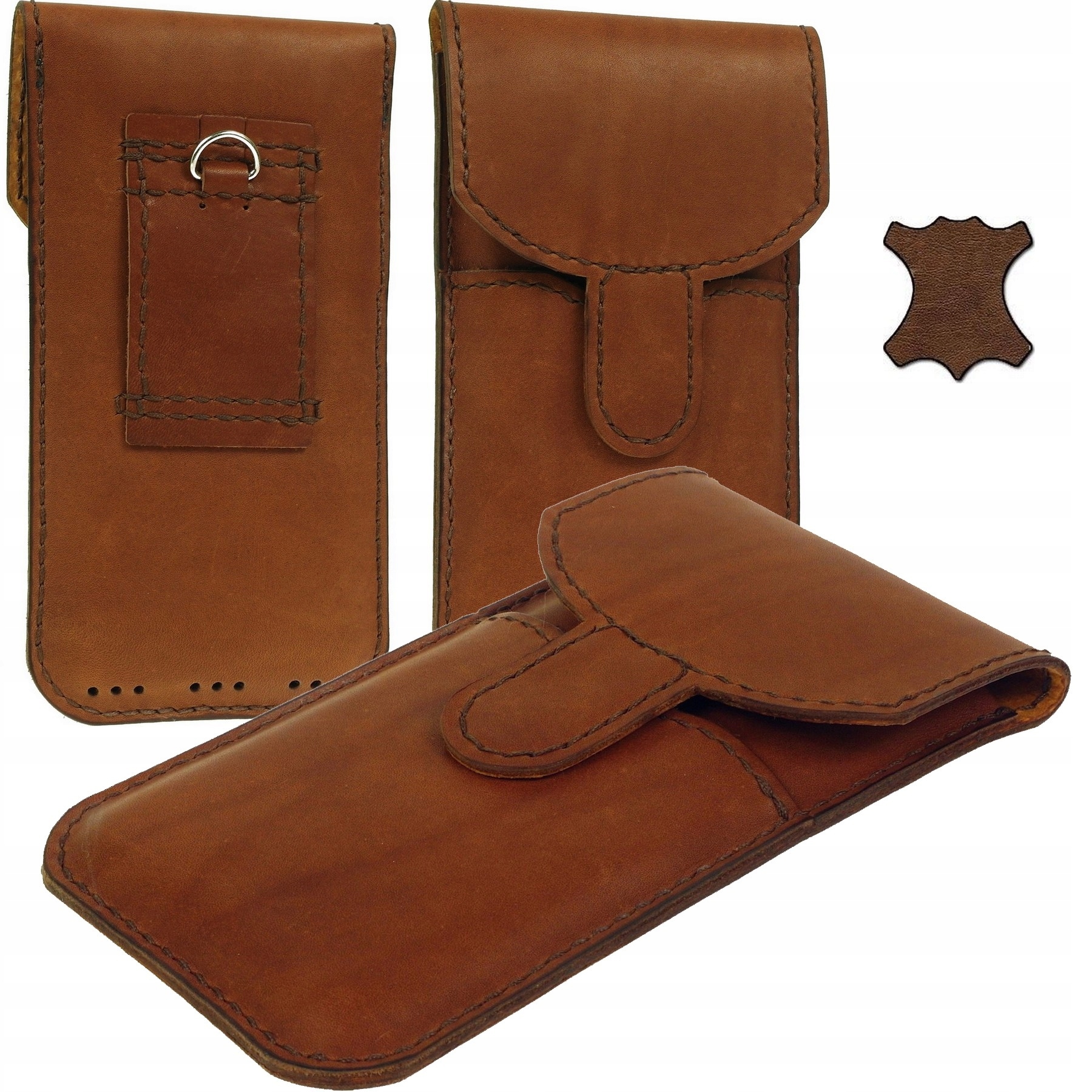 Obal na telefon s kapsou na karty a doklady, poutkem na opasek a kovovým očkem pro připevnění vodítka, s magnetickým zavíráním, vyrobeno v Polsku z nejkvalitnější přírodní hovězí kůže