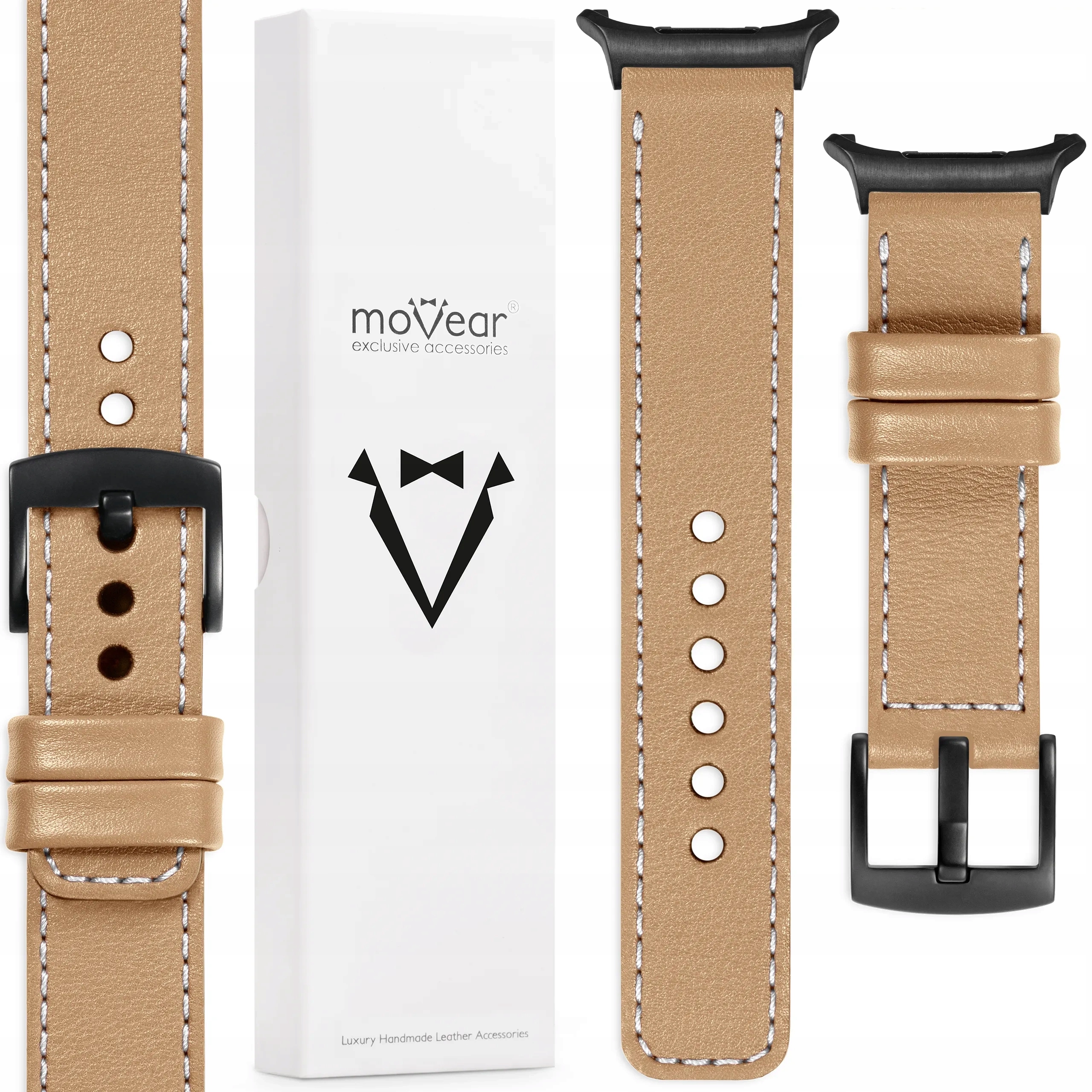 ✅ moVear Prestige C1 Cappuccino kožený řemínek 22 mm pro Samsung Galaxy Watch Ultra | prošití bílé barvy
