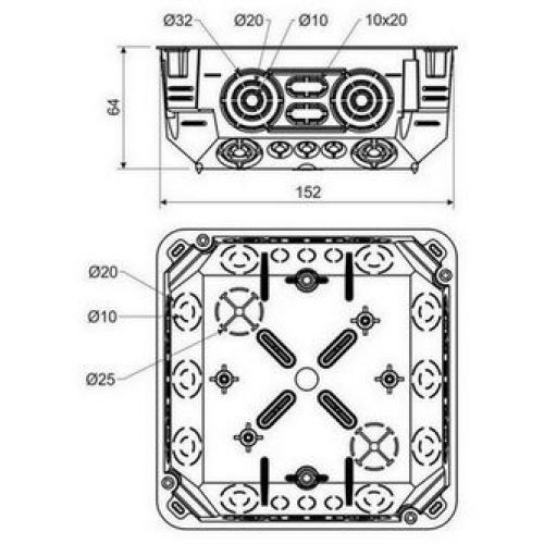 KO 125/1L – KRABICE ODBOČNÁ, konfigurace NA, barva OKROVÁ, balení – 1/27 ks – velké množství průchodů pro zavedení kabelů a trubek,možnost instalace nosné lišty TS 35, možnost nastavení víka do horizontální polohy, možnost vylomení celé bočnice pro snadnější manipulaci s kabely, na vnější stěně dna jsou hroty pro označení vrtání otvorů