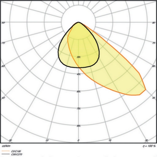 Světlomet s rozptylem světla na bázi čočky až 140 lm/W. Vlastnosti produktu: Vysoká světelná účinnost: až 140 lm/W. Asymetrické vyzařování pro různé oblasti použití. Integrovaný předřadník s širokým rozsahem napětí, vhodný pro 100 – 277 V AC. Úhlová (30 °) montážní konzola a sklopení až 210 °. Stupeň krytí: IP65. Odolnost proti nárazu: IK08. Okolní teplota při provozu: –30…+50 °C. Vysoká přepěťová ochrana: až 6 kV (L / N-PE), 4 kV (L-N). Integrovaný odvzdušňovací otvor zabraňující vzniku kondenzace uvnitř svítidla. Předinstalovaný flexibilní 1m kabel (H05RN-F), 3 × 1,0 mm² jednotlivé vodiče, obalené. Výhody produktu: Úspora energie až 90 % ve srovnání s halogenovými reflektory. Úspora energie až 45 % v porovnání se svítidly s tradičními výbojkami. Vysoká světelná celistvost. Nulová hodnota horní účinnosti svítidla (ULOR 0 %) při montáži v náklonu 0°. 5letá záruka. Oblasti použití: Přímá náhrada za svítidla používající HID světelné zdroje. Venkovní použití (IP66). Veřejné prostory. Průmysl. Sportovní zařízení. Parkoviště.