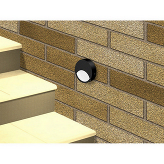 LED nástěnné a fasádní svítidlo Ursa R, černá barva, 1,5W, 230V, IP65, teplá bílá (3000K), světelný tok 58lm, vyzařovací úhel 110°, CRI 80, životnost až 30.000h, rozměry Ø105 x 20, materiál hliník/plast, nestmívatelné.