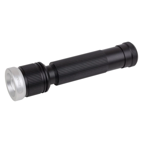 Venkovní mobilní svítilny. Vlastnosti výrobku: Pevné hliníkové pouzdro. Pohodlné tlačítko pro přepínání režimů. Výhody výrobku: 4 provozní režimy: 1 stisk: jasné světlo 1400 lm, 2. stisk: jemné světlo 450 lm, 3. stisk: režim SOS, 4. stisk: režim blikání. Úhel světelného paprsku se nastavuje otáčením čočky. 4 hodiny provozu při plném jasu. Napájení 6 AAA bateriemi (nejsou součástí balení). Typ krytí: IP65 (s uzavřeným otočným mechanismem nastavení čočky). Oblasti použití: Multifunkční.