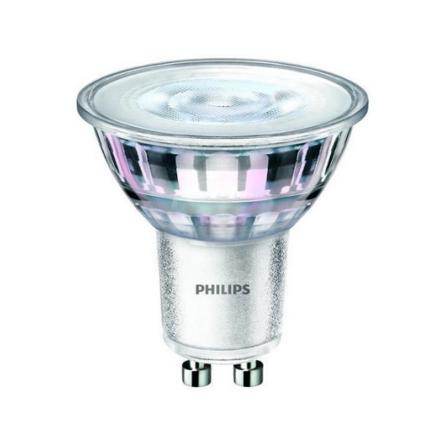 LED žárovka GU10 Philips MV 3,1. W (25. W) teplá bílá (2700. K) s dlouhou životností 15 000 hodin a nízkým spotřebou energie.