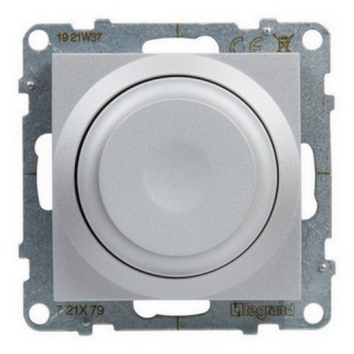 Legrand SUNO stmívač otočný hliník 721379 nabízí plynulé stmívání pomocí otočného knoflíku a funkci paměti světelných hodnot.