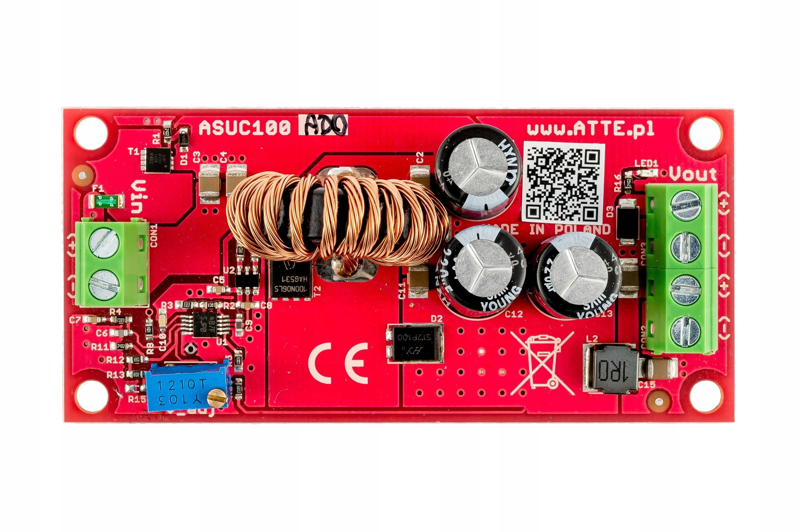 Měnič Napětí DC/DC, zvyšující napětí, neizolovaný, Vin 10 V…30 VDC, Vout 12…48 VDC, Pout 100 W, modul pro zabudování, typ ASUC-100-AD0-OF