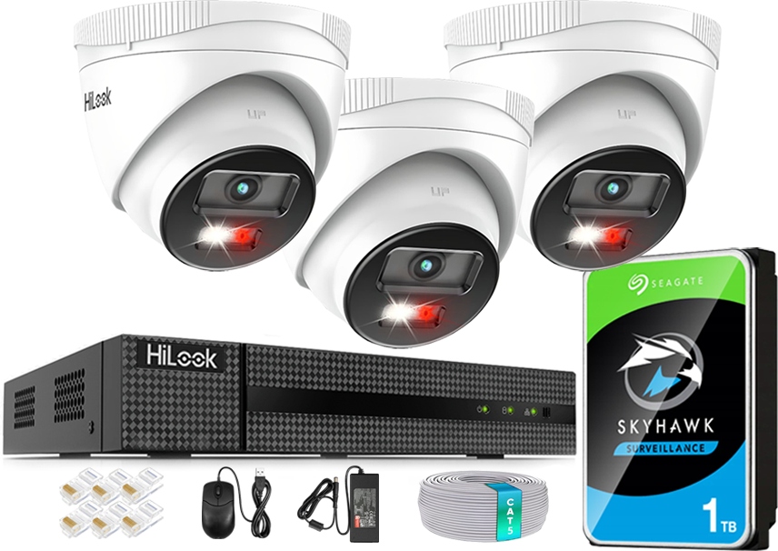 3x Venkovní IP kamera 6Mpx HiLook | 1x 4kanálový PoE rekordér | 1x 1TB disk | Kabeláž a montážní příslušenství
