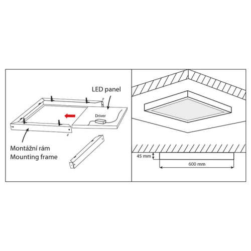 Montážní rám ke svítidlu Office 6060 ve stříbrné barvě. Elegantní přisazené svítidlo se LED panely Office.
