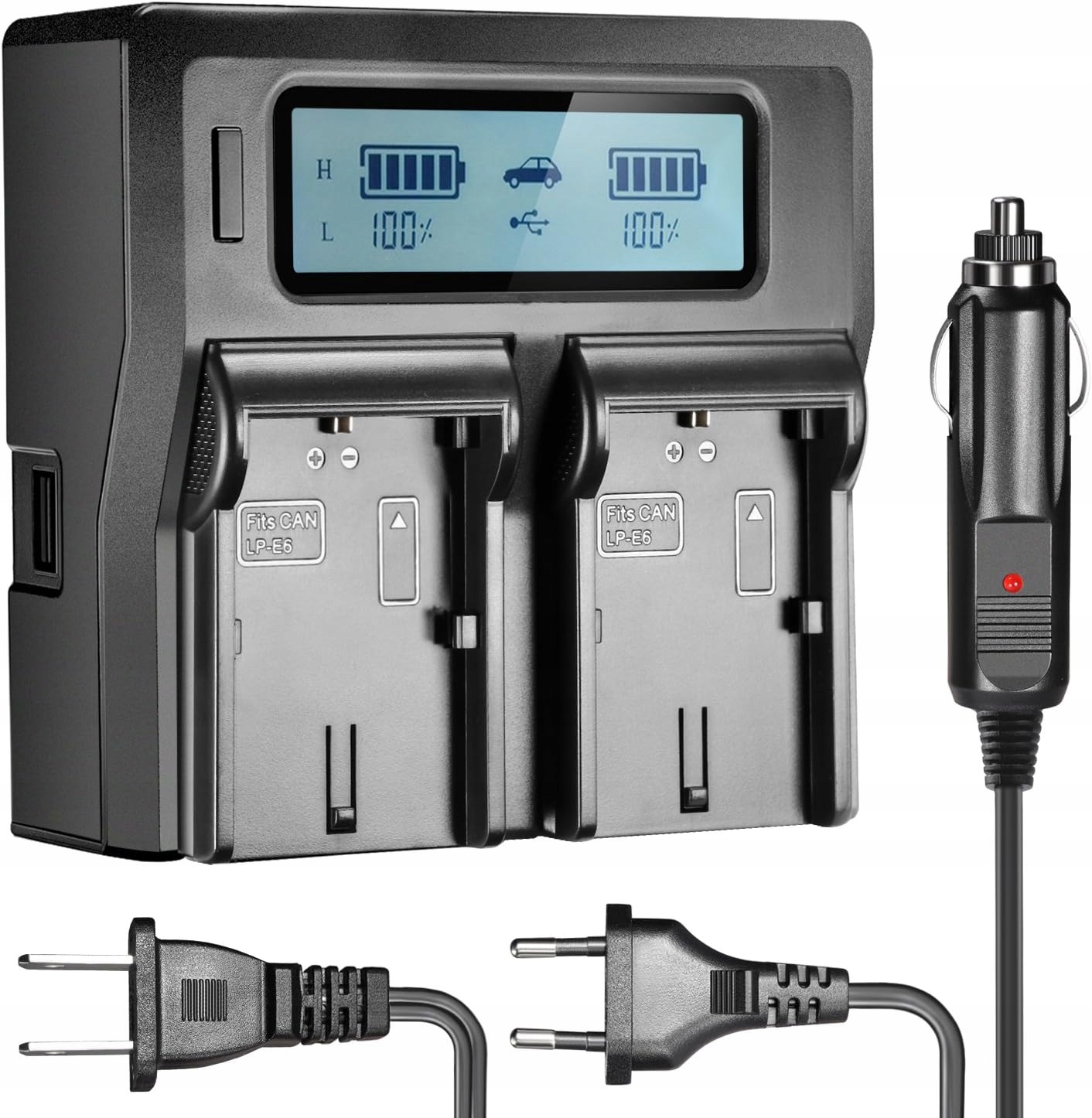 ✔ Dvojitá nabíječka obsahuje displej, který poskytuje podrobné informace o úrovni nabití lithium-iontové baterie.
