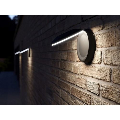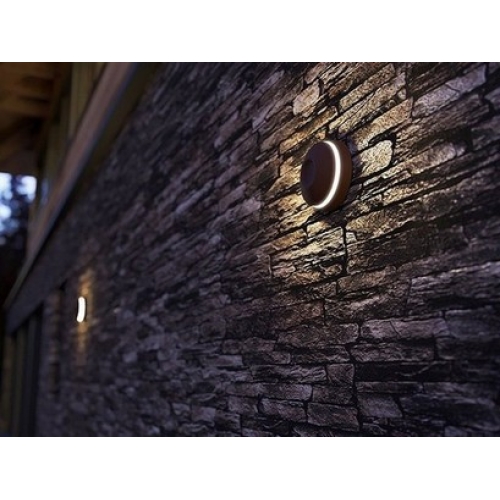 Zahradní nástěnné LED svítidlo s kruhovým designem, které svými paprsky vytváří příjemnou světelnou mlhu ve tvaru kruhu v jeho okolí. Nasvítit se dají nejen venkovní fasády, ale i vnitřní chodby, schodiště, nebo wellness centra pro jeho vysokou odolnost proti vodě. Svítidlo lze také vyklopit nahoru k nasvícení prostoru pod svítidlem nebo jej otočit a použít tak k nasvícení fasád směrem vzhůru nebo k nepřímému osvětlení. Vyráběno z hliníku s plastovými kryty. Použít jej můžete v exteriérech i v interiérech budov. V oblibě je svítidla používat v sestavách, které pak tvoří zajímavé, dekorativní, světelné mozaiky. Velmi nízká spotřeba. Svítidlo je dostupné ve 3 barevných variantách: rez, stříbrná, tmavě šedá.