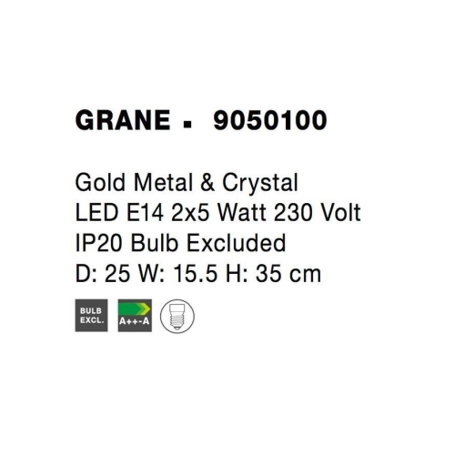 Designové nástěnné svítidlo NOVA LUCE GRANE E14 9050100 bez žárovky nabízí luxusní a moderní osvětlení pro vaše interiéry.