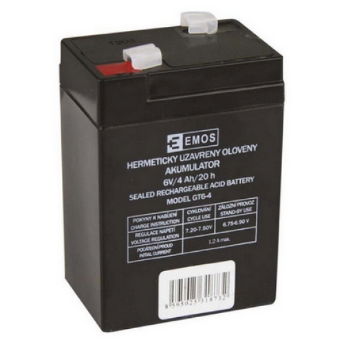 Akumulátor EMOS je vhodný jako náhradní baterie pro svítilny, dětské vozítka, nouzové osvětlení apod. Bezúdržbový, ventilem řízený olověný akumulátor v provedení AGM umožňuje být používán v libovolné poloze.