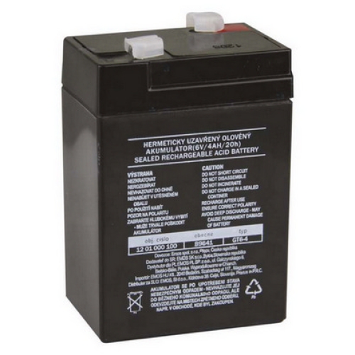 Olověný akumulátor EMOS B9641 6. V 4. Ah (DHB640) – spolehlivá náhradní baterie pro svítilny, dětská vozítka a nouzové osvětlení.