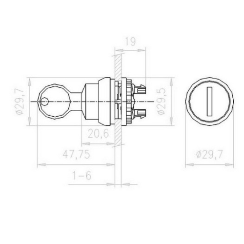 Ovládací hlavice otočná s klíčem 2-polohy s aretací EATON M22-WRS-A1 /229092/