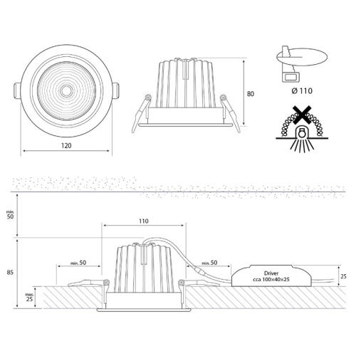 LED podhledové svítidlo 16W – směrovatelné (ekvivalent 100W halogen, úspora až 85%), 230V, IP20, 4000K-neutrální bílá, světelný tok 1380lm, vyzařovací úhel 38°, Ra>80, životnost až 50.000h, rozměry ø120×80, hliník/sklo, nestmívatelné, PF>0,9
