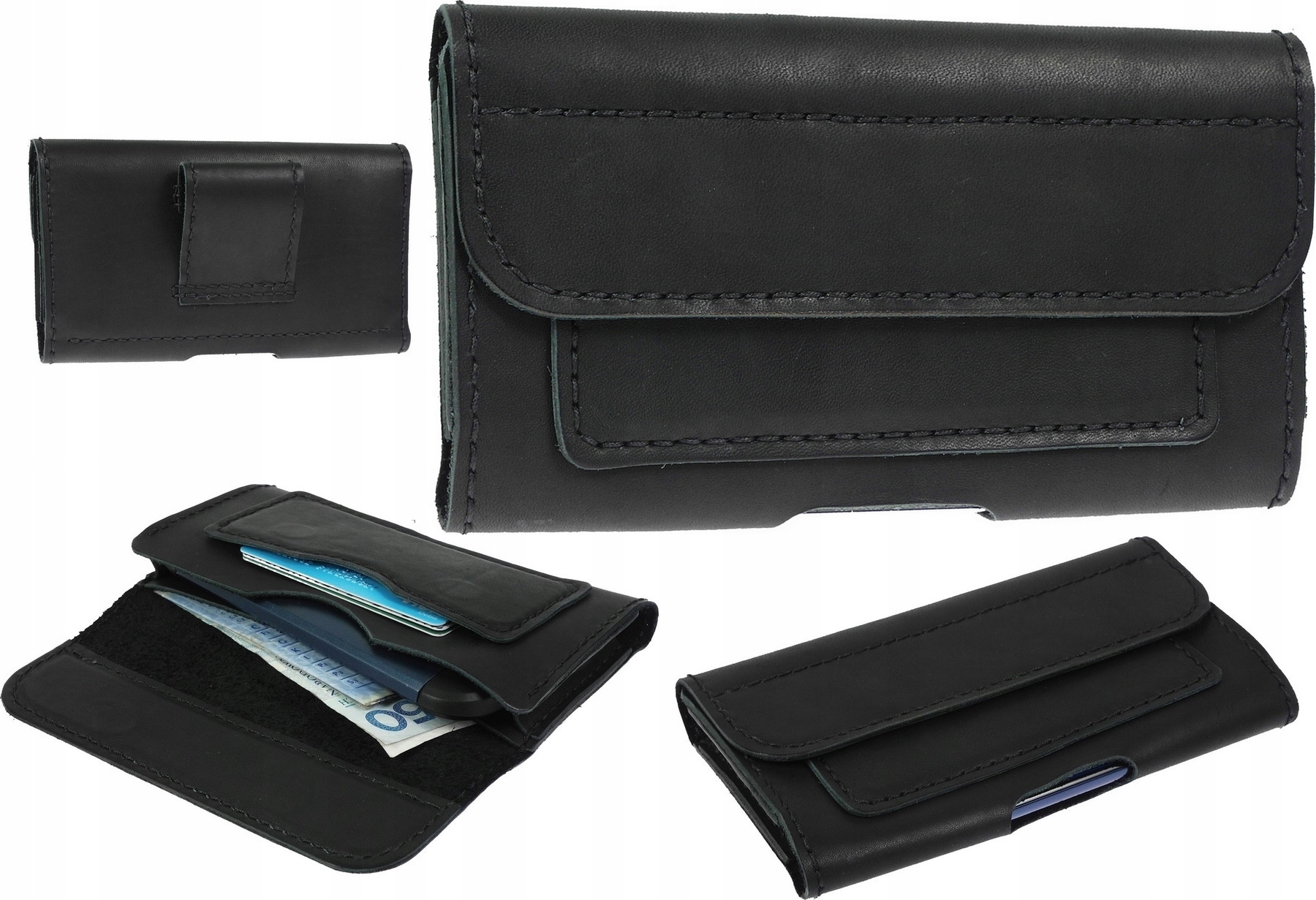Ručně šitý kožený obal – pouzdro na telefon s kapsou na karty a vnitřní kapsou na doklady – bankovky a magnetickým zavíráním, vyrobeno v Polsku z nejkvalitnější přírodní hovězí kůže