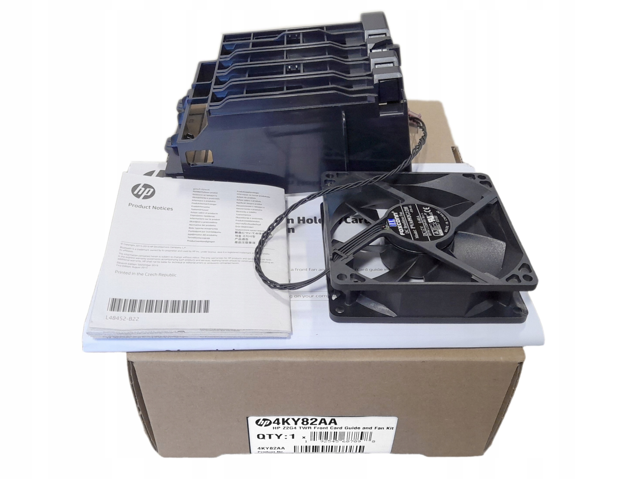 Produkt je nový, továrně zabalený (krabička), originální (vyrobený pro HP), plně funkční a má záruku. Kompletní sada je vidět na fotografiích (ventilátor L13269-001, držák L23931-001, návod). K dispozici ihned.