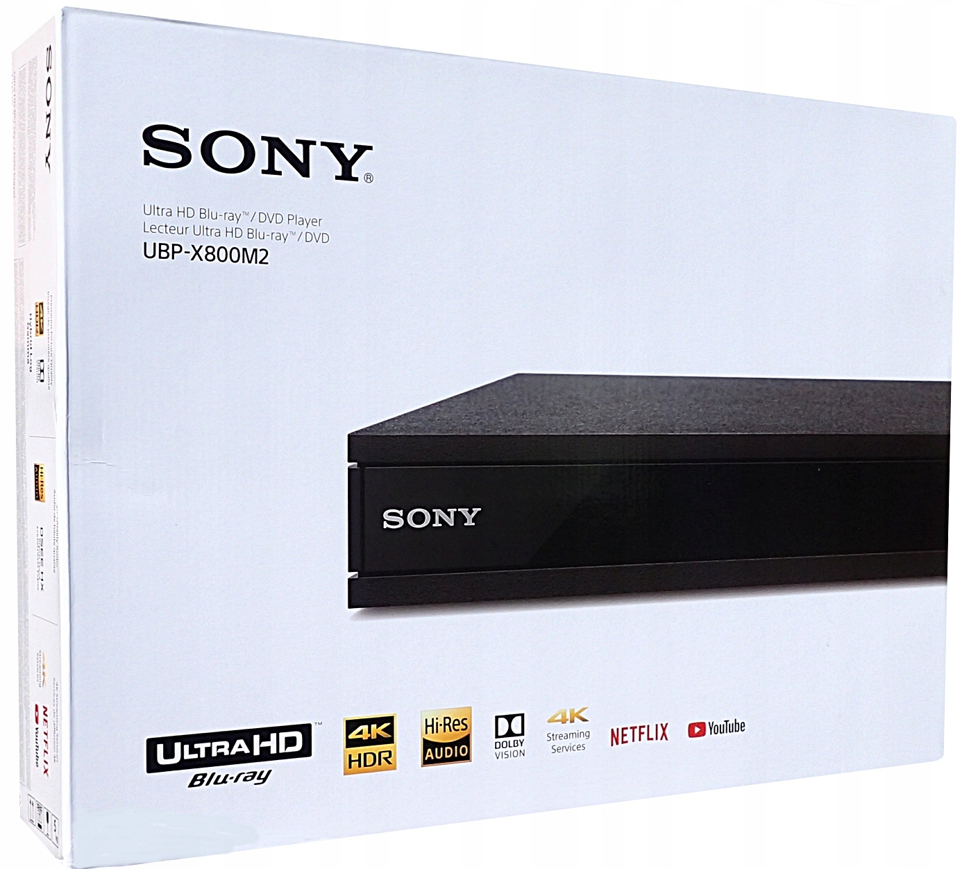 Sony UBP-X800M2 je 4K Ultra HD Blu-ray přehrávač s podporovanými formáty zvuku Dolby Atmos a DTS:X. Zařízení dokáže interpolovat signály menšího rozlišení do formátu 4K a má funkci HDR, která má 100krát vyšší úroveň jasu při zachování vysoké kvality černé barvy.