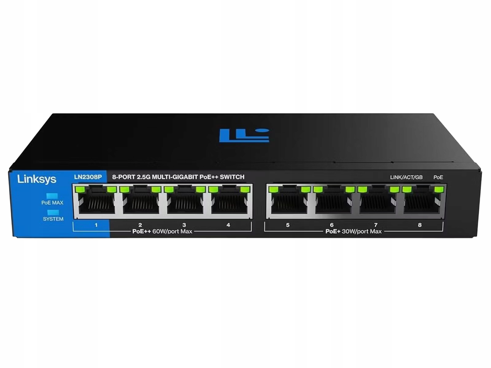 - Porty: 8 x 2,5 GBit multi-gigabit