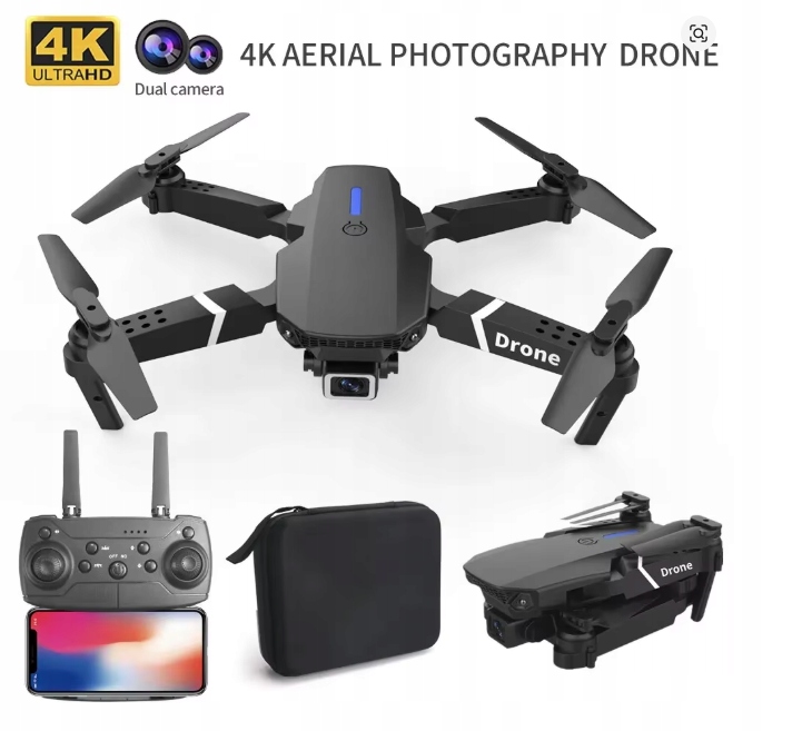 Profesionální dron E88 s širokoúhlou kamerou 4K HD 1080P, WiFi FPV, funkcí udržování výšky, skládací RC dron, kvadrokoptéra, vrtulník
