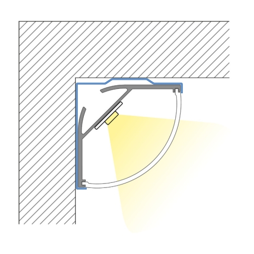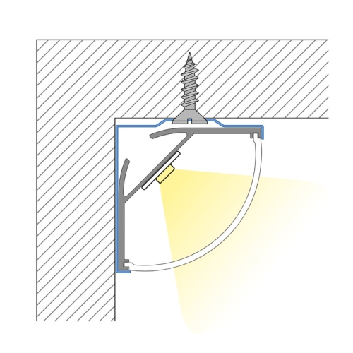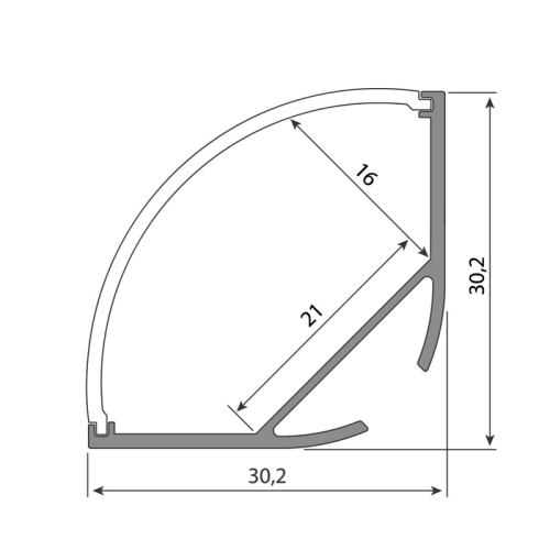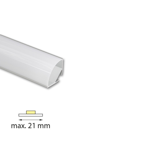 Rohový hliníkový profil pro LED pásky, rozměry průřezu cca 30×30 mm. Součástí je mléčný difuzor, který lze do profilu nacvaknout. Tento profil je určen pro krytí a chlazení LED pásků do šíře 21 mm. Upevnění k podkladu lze provést pomocí montážních úchytů, vrutů, lepidel. K profilu lze zakoupit úchyty a koncovky.