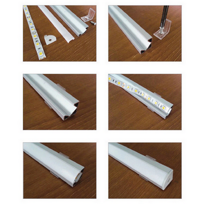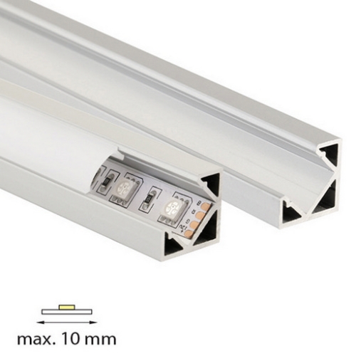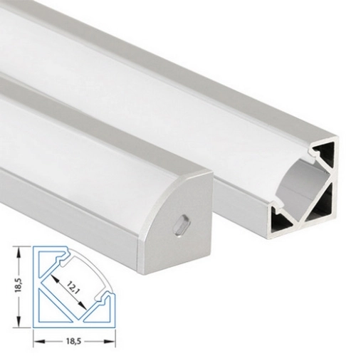 Rohový hliníkový profil pro LED pásky, rozměry průřezu cca 19×19 mm. Součástí je mléčný difuzor, který lze do profilu nacvaknout. Tento profil je určen pro krytí a chlazení LED pásků do šíře 12 mm. Upevnění k podkladu lze provést pomocí montážních úchytů, vrutů, lepidel. K profilu lze zakoupit úchyty a koncovky.