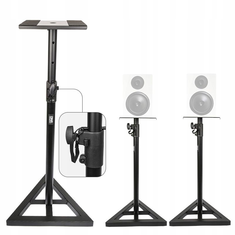 DNA MON 1 je sada dvou robustních, profesionálních stativů pro studiové monitory. Stojany jsou kompletně vyrobeny z práškově lakované oceli v černé barvě.