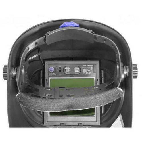 Samostmívací svářečská maska, určená k ochraně zraku (hlavy) při obloukovém svařování metodami MMA, MIG/MAG, WIG, FLUX, PAW, řezání plamenem a plazmou (PAC) nebo broušení. Splňuje bezpečnostní požadavky na (osobní) prostředky ochrany očí a obličeje před škodlivým optickým zářením a dalšími riziky při sváření (ČSN EN 175), filtry pro svařování se spínaným stupněm ochrany (ČSN EN 379+A1), v souladu s normou ČSN EN 166 (všeobecné funkční nároky na prostředky ochrany zraku). Zaoblené přední krycí sklo, poskytující panoramaticky široké zorné pole (180°). Samostmívací kazeta – automatické ztmavení (rozjasnění) filtru v rozsahu DIN 5 – 13 (DIN 4) podle zvoleného typu práce (svařování – řezání – broušení); vč. zobrazení vnějšího prostoru v reálných barvách (TRUE COLOUR). Přesné seřízení citlivosti filtru na intenzitu vnějšího osvětlení, nastavení prodlevy mezi zhasnutím oblouku a projasněním zorníku, indikace stavu baterie. Konstrukce: skelet z odolného plastu, průzor (d x v): 100 x 83 mm, lithiová baterie CR 2450, hlavový kříž s potítkem. Celkové rozměry (d x š x v): 238 x 238 x 323 mm.