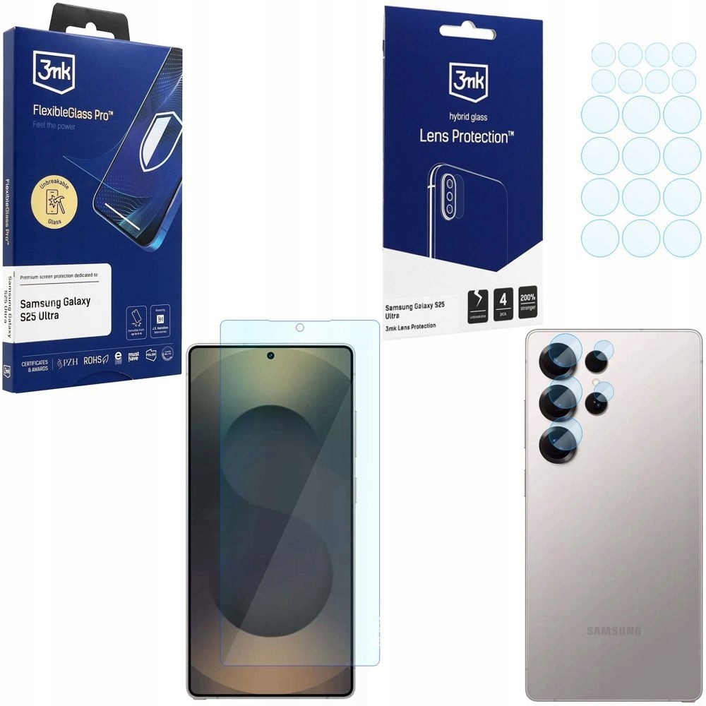 SKLO 3mk Flexible Glass PRO + 4x Ochrana objektivu APARÁTU pro Samsung Galaxy S25 Ultra