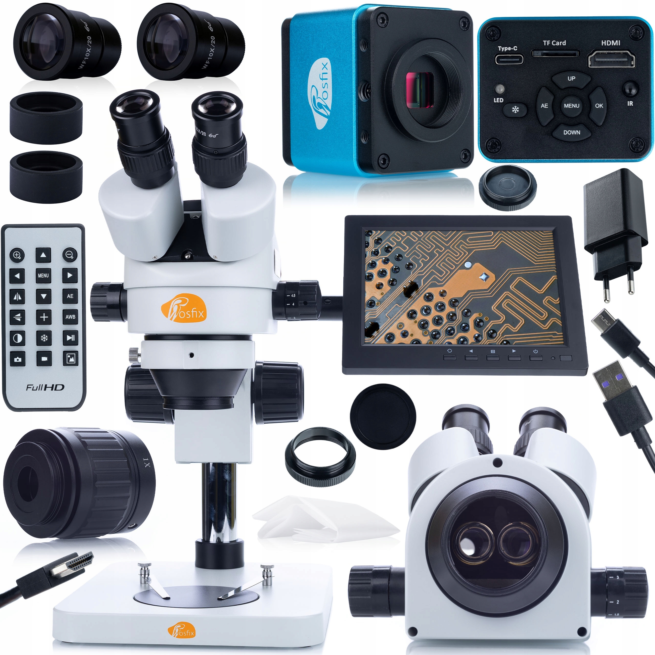 Kompletní mikroskopická sada Mercury Pro s mikroskopickou kamerou, držákem na displej a 8palcovým displejem