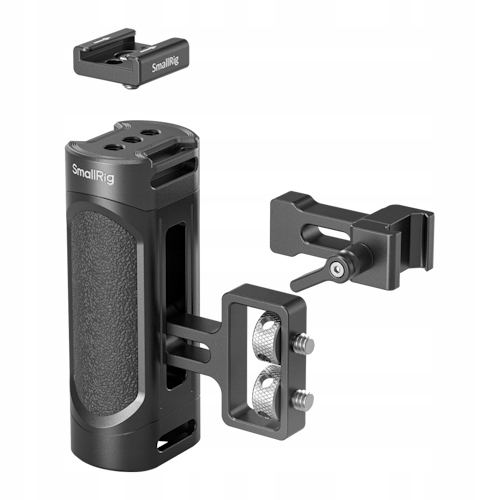 SmallRig mini Side Handle Kit 4816 je navržen tak, aby snížil zatížení ramene, usnadnil pohyb kamery a poskytl upevňovací body pro příslušenství. Sada obsahuje: jeden držák a dva adaptéry držáku, jednu studenou patku. Uchyt je pokryt protiskluzovou, nemrznoucí silikonovou vrstvou, která zajišťuje pohodlné uchopení. Držák má dva závitové otvory 1/4″-20 s roztečí 18 mm (0,7 palce), což zajišťuje širokou kompatibilitu a lze jej také přizpůsobit kleci s vestavěnou kolejnicí NATO. Lze jej připevnit na obě strany klece a nastavit nahoru a dolů, abyste našli nejlepší polohu. Tři závitové otvory 1/4″-20 na horní straně podporují Magic Arm 2070B pro monitor a Cold Shoe 2260 pro mikrofon, LED světlo apod.; otvory pro pásky na obou stranách umožňují připevnění pásku na zápěstí pro zvýšení stability.