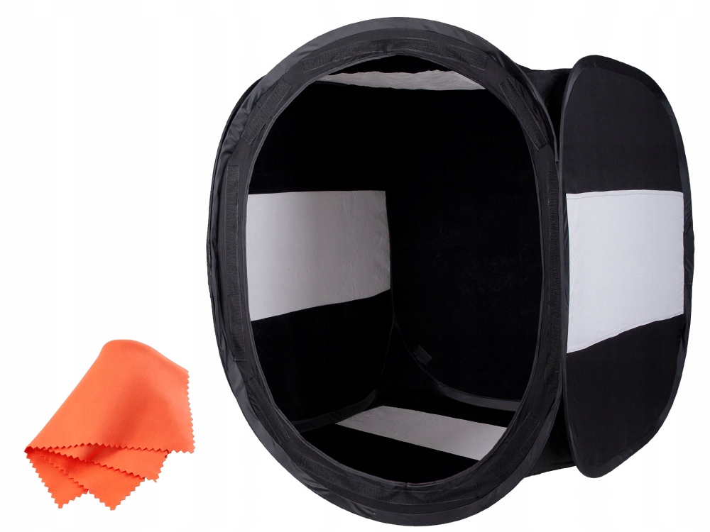 Černý stan bezstínová krychle o straně 100 cm v sadě se 4 pozadími: černou, bílou, červenou a modrou. Jedná se o jeden z mála černých stanů dostupných k prodeji. Na bocích stanu jsou umístěny světlo propouštějící bílé vložky. Součástí balení je také přední stěna s otvorem pro objektiv připevněná na suchý zip.
