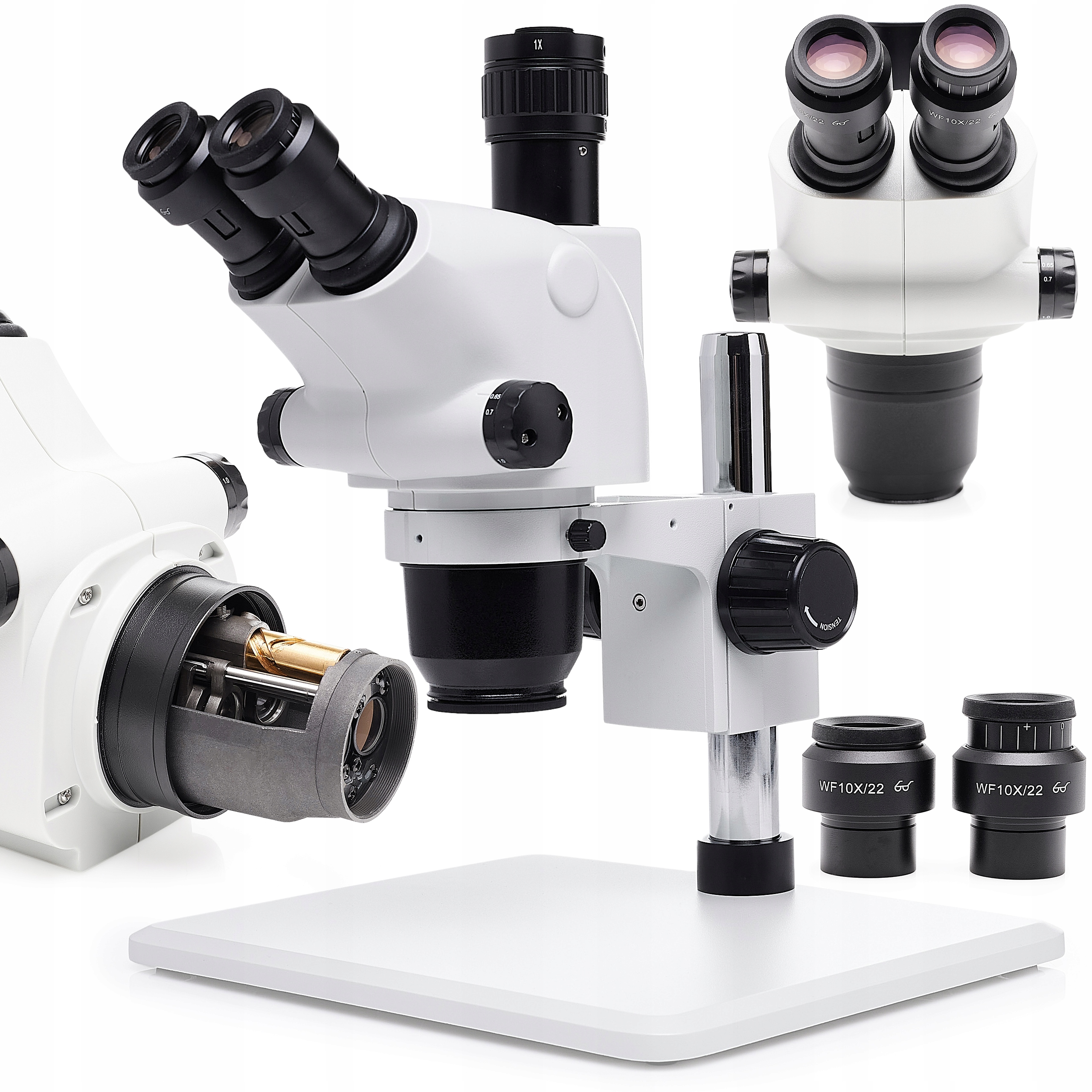 Rozsah zvětšení od 6,5x do 65x u tohoto modelu umožňuje velkou svobodnou regulaci v závislosti na zkoumaném vzorku. Můžete bez problémů přepínat mezi obecným pozorováním a detailním zkoumáním mikrodeatilů. Takové řešení činí mikroskop neobyčejně univerzálním a najde použití v mnoha oborech – od biologie po průmysl. Dodatečně širokoúhlé okuláry 10x zvětšují zorné pole, což usnadňuje vaši práci a umožňuje získat ještě více detailních informací o zkoumaných objektech.