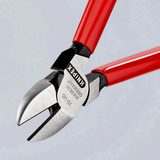 Boční štípací kleště štíhlý tvar hlavy pro použití na těžko přístupných místech. Nepostradatelné boční štípačky pro mnohostranné použití. Velmi kvalitní materiál a precizní zpracování pro dlouhou životnost. Precizní břity pro měkký a tvrdý drát. čistý řez tenkých měděných drátů, a to i na hrotech břitů. Břity doplňkově induktivně tvrzené, tvrdost břitů asi 61 HRC. Nová generace klasických výrobků KNIPEX s ještě lepšími vlastnostmi. Optimalizovaný přenos síly pro o 20 % vyšší řezný výkon než u předchozího modelu. – Řezné hodnoty, měkký drát (průměr): Ø 4,0mm – Řezné hodnoty, polotvrdý drát (průměr): Ø 2,5mm – Řezné hodnoty, měkký drát (průměr): Ø 1,8mm